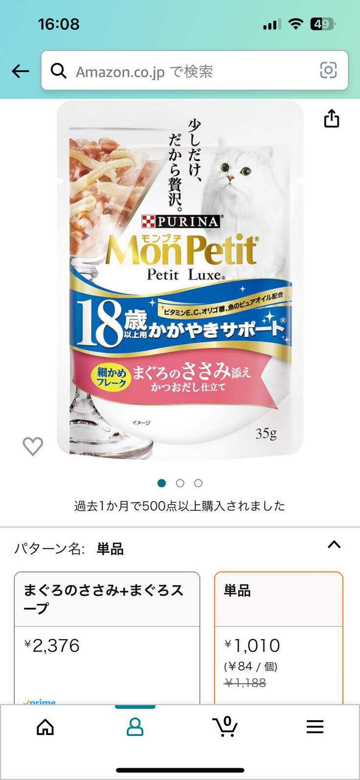 腎臓サポート用で比較的少量でもカロリーが取れます。