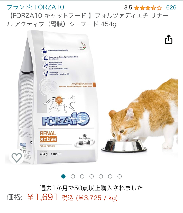食欲皆無だった時に強制給餌をする際に、スペシックをベースにドライフードをミキサーで粉砕して混ぜて一口大の団子上にしてあげたり、カリカリもたまに食べる為療法食のドライフードも常備しています。