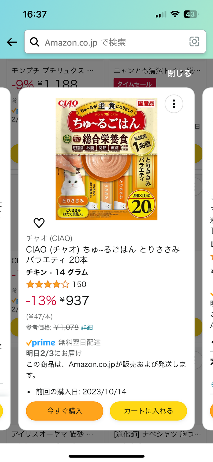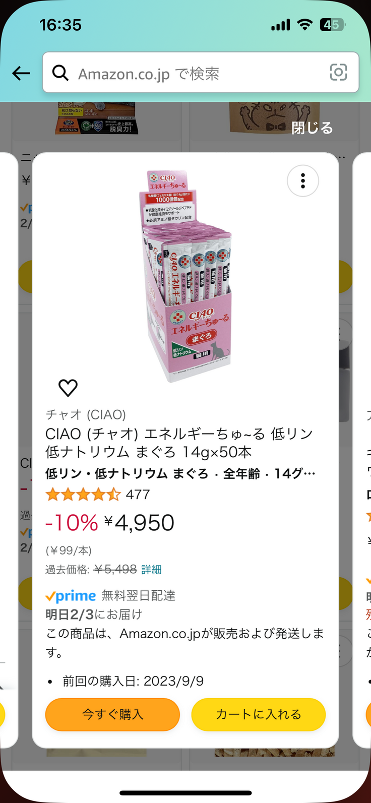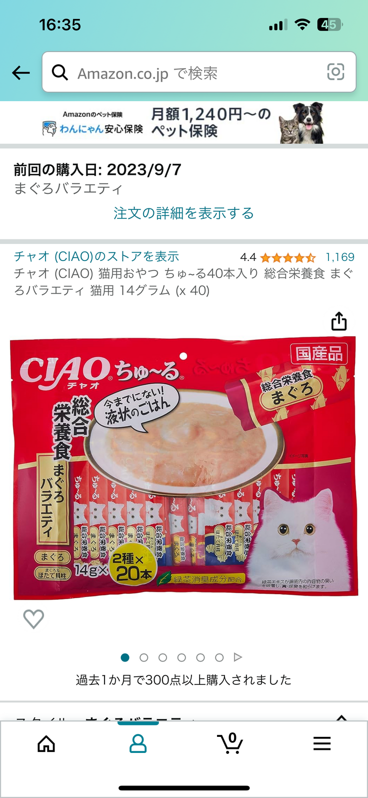 食欲不振の時の救世主かつ、毎日点滴後のご褒美としてあげているちゅーる。