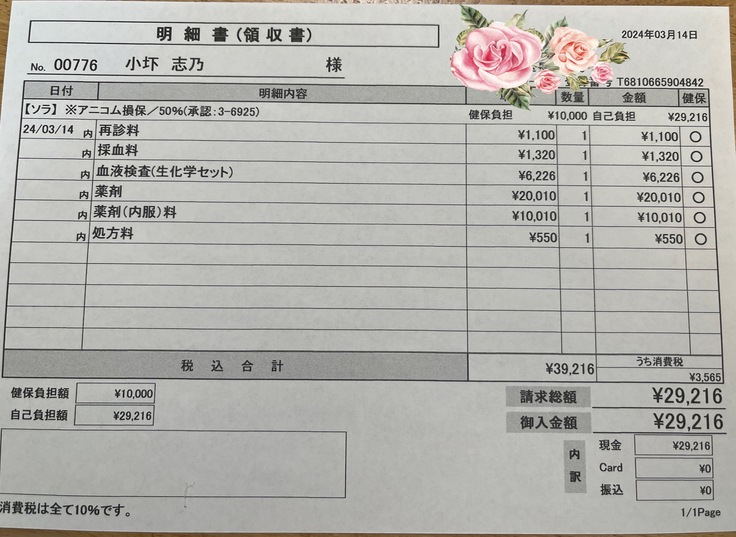 看護師さんから値上がりしましたと申し訳なさそうに言われてしまった。。大体+3000円くらい上がったかな。
