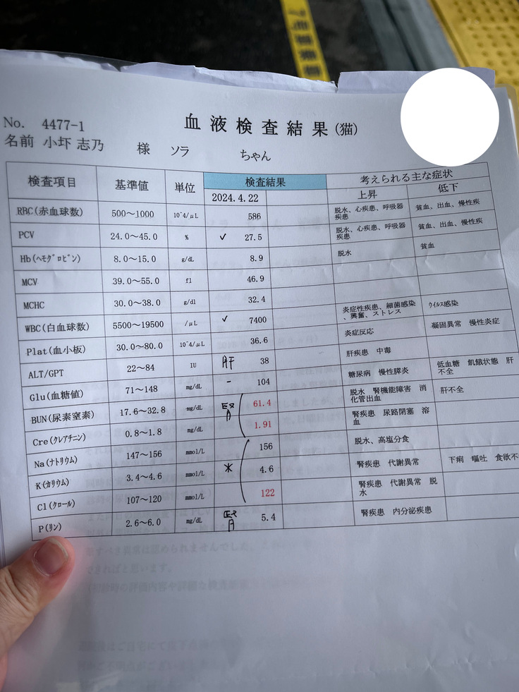 土曜日(4/20)かかりつけの先生から血液検査結果の電話を聞いた際に、その事を伝えたところ