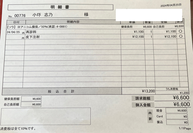 4/22 医療費明細⇩