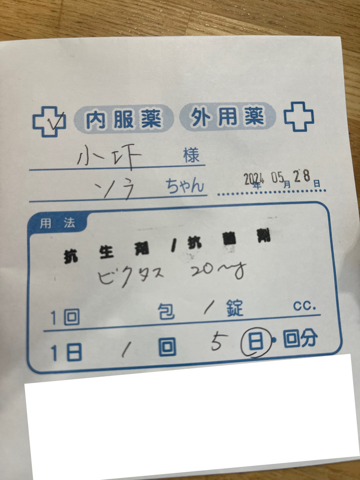 しかしながら5日分では足りないので(最低でも10日は投薬必要)来週どこかのタイミングで追加で貰いに行きます。