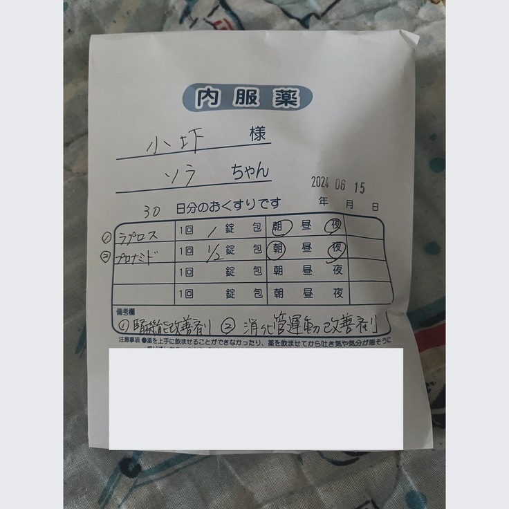 プロナミドを飲ませてから、吐く回数減った気がするから、継続で貰いました。