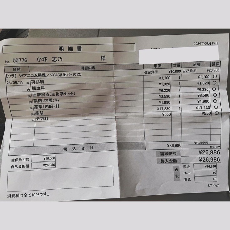 1ヶ月分の輸液セットとラプロスとプロナミドを。
