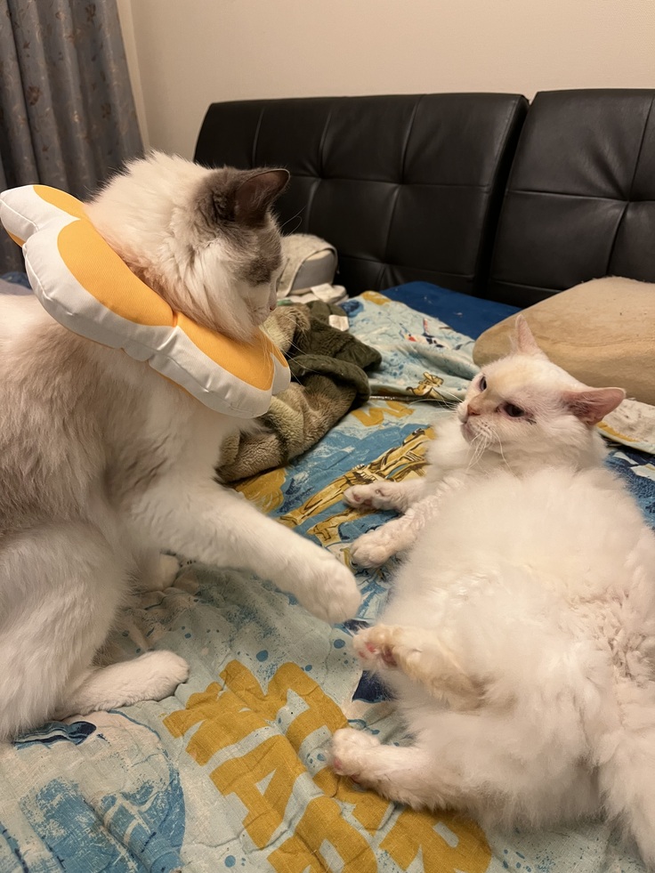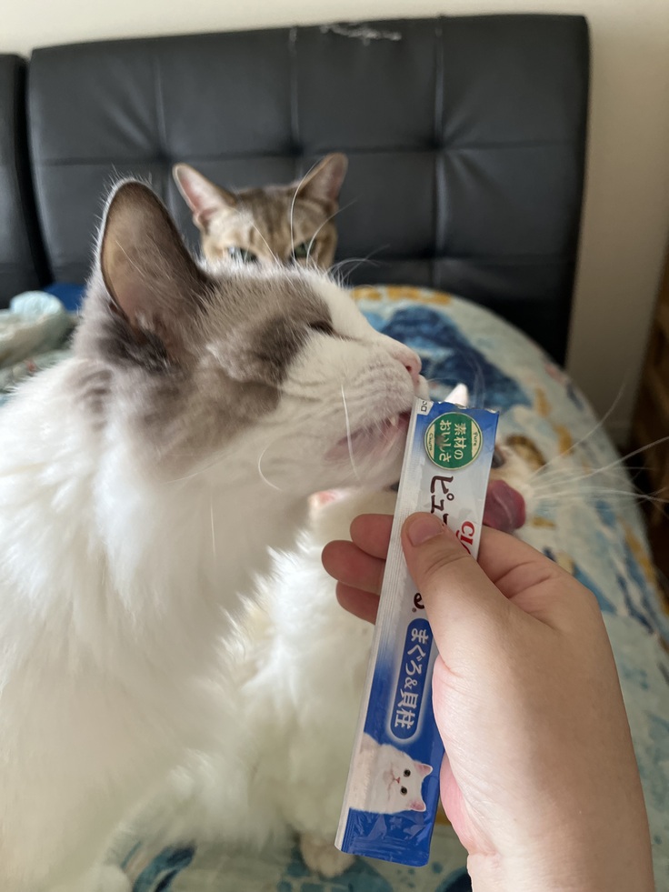毎日の投薬は、心理戦で薬を出す音で既に警戒し👀、私の手の届かないところに避難するので、携帯いじって何もしないふりをして近づいたところをキャッチして投薬するというのも中々時間がかかるようになりました。
