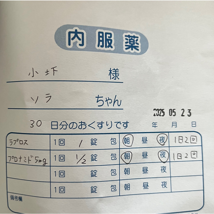 開院前に行ってすでに6人待ちの状態で、1時間半ほど待ってから診察だったため、ソラ坊待ちくたびれさせてもうた。。ごめんよ。。