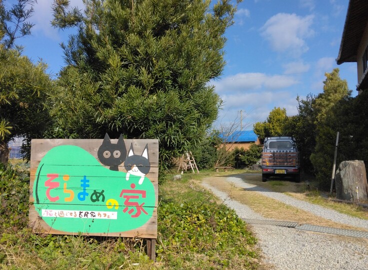 2022年3月に香川県三豊市で、50代元看護師夫婦が移住してはじめた古民家猫カフェです。保護猫とのふれあいを通して、猫と人、地域と、いろんな輪ができていけばと思っています。 元保護猫の『そら』と『まめ』を中心に、猫がいる実家に帰ったような落ち着ける場所をがコンセプトに、いろんな方に猫とふれあっていただき、猫との暮らし体験や猫への理解や関心、そしてそこから保護猫の里親さん探しにもつながっていけばと考え、保護ねこ活動も行っています。