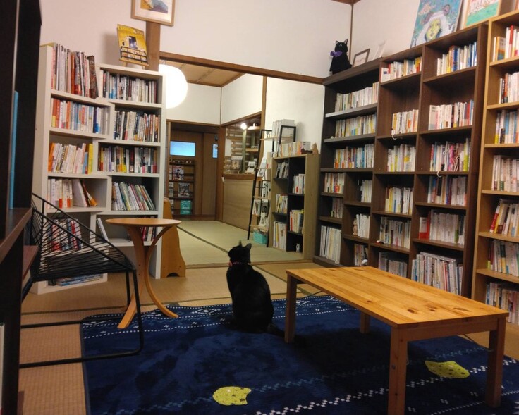 カフェ内にあり、猫本をはじめ、各ジャンルの本を自由に読めます