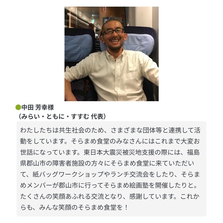 応援メッセージご紹介「中田芳幸様 みらい・ともに・すすむ代表」