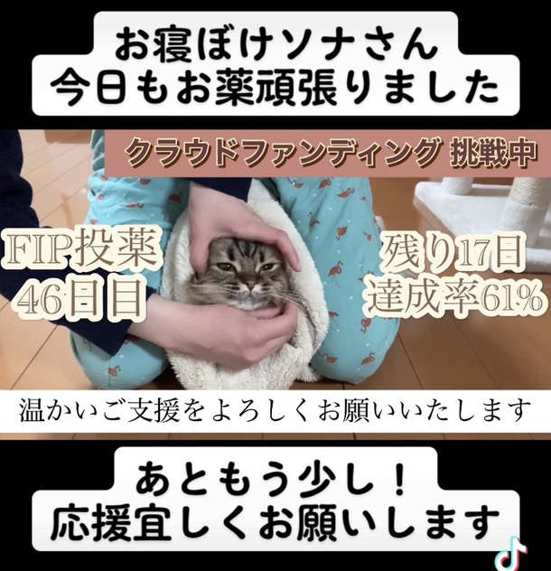 猫伝染性腹膜炎を患ったポンちゃんの明日をつないで頂けないでしょうか