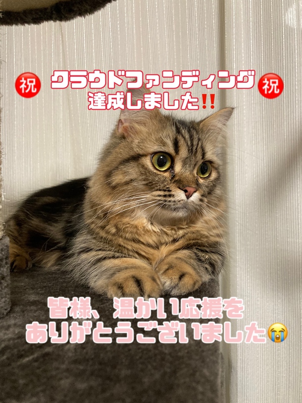 またソナが元気に健康に過ごしてくれることが応援してくださった皆様へのお返しでもあると思うので、ソナに幸せを感じてもらえる様に飼い主として、家族として努めてまいります🐈💕