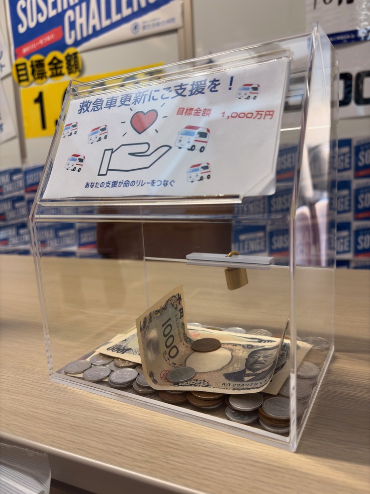 募金箱の前では、「救急車、ぜひ新しくしてくださいね」「頑張ってください」といった声をかけていただくことも多く、一人ひとりの想いが形となって集まっていることを実感しています。