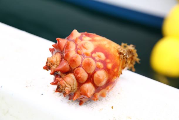 私の一押しの食べ物はホヤです。おすすめな食べ方は、船の上で生のホヤを丸かじり!!
