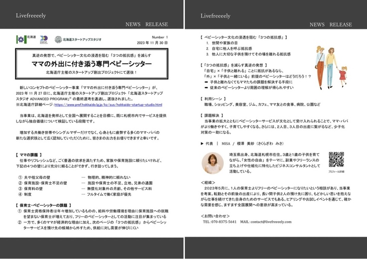 なお、ビジネス構築に関しては、当ビジネスアイデアが最優秀賞を受賞したスタートアップ創出プロジェクトを通じ、主催のSTARTUP HOKKAIDO実行委員会、審査員の株式会社ペライチ創業者 橋田一秀氏にサポート、ご助言いただいています。