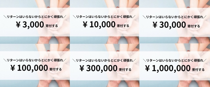 【寄付】リターンはいらないから、とにかく頑張れ!3,000円寄付する!