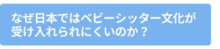 ベビーシッターは、日本のママにこそ必要なサービスだと思います。しかし、日本では1960年代に家政婦が育児をサポートするようになってから今日まで60年以上が経ちますが、さほど文化として受け入れられていないように感じます。