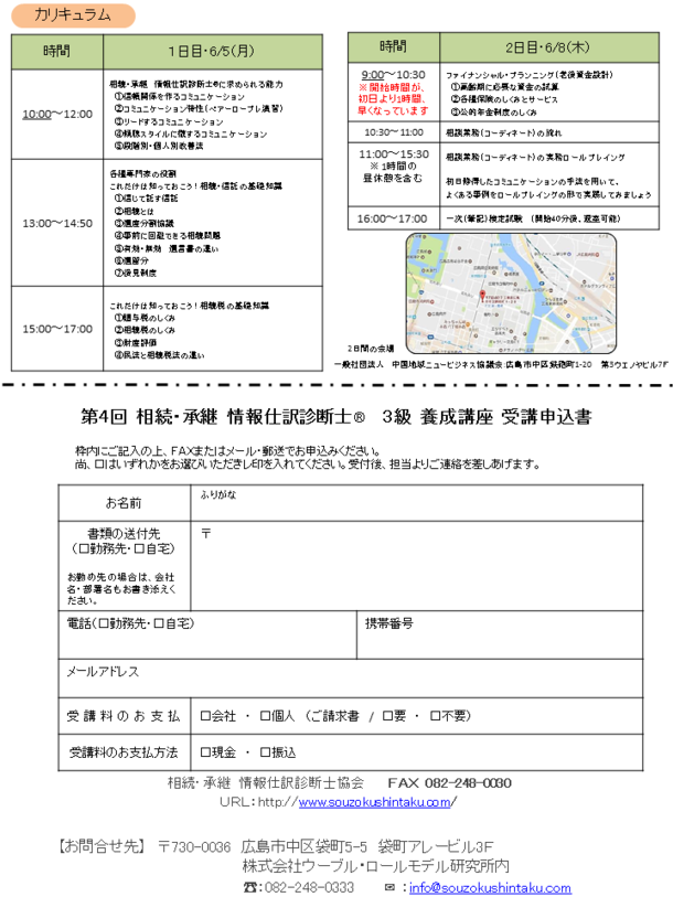 (広島市中区鉄砲町1-20 第3ウエノヤビル7F・二日間共通)