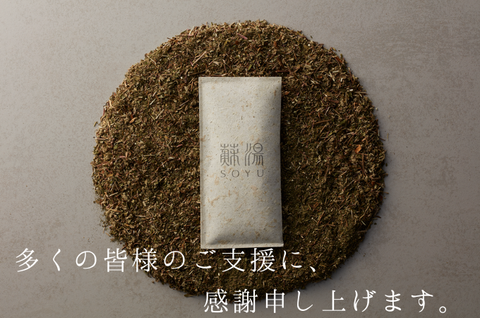 伊吹山の恵みを受け丁寧に育成された、希少価値の高い植物の未利用素材を活用して新たに作られた入浴用ボタニカル「蘇湯」。