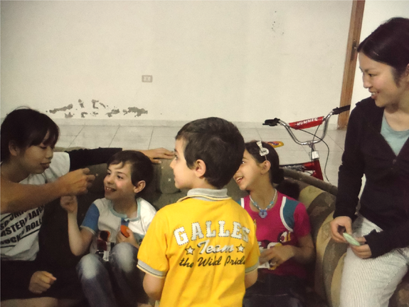日本人4人で行ったこともあり、アナス君とそのきょうだい(弟・姉)は始終大はしゃぎでした。ぬいぐるみで遊んだり、乗り物ごっこをしたり。