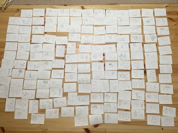 そのあまりにも可愛らしい絵カードに、思わず全部並べたくなってしまい、友人と一緒に並べました。