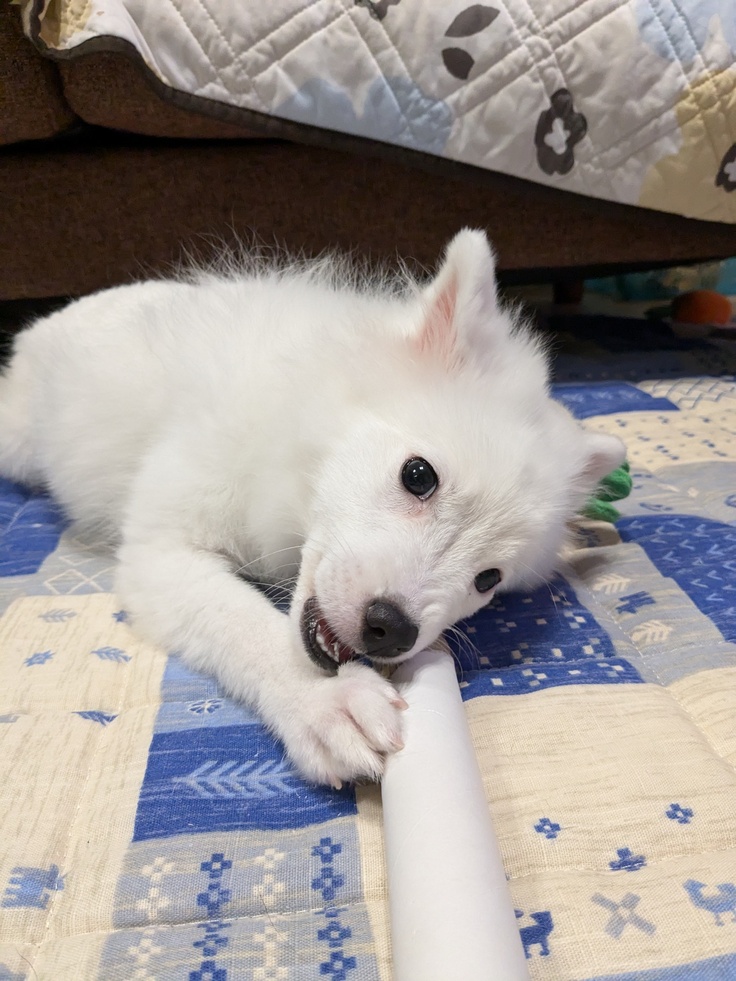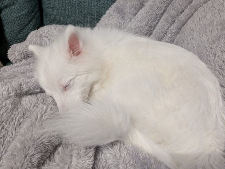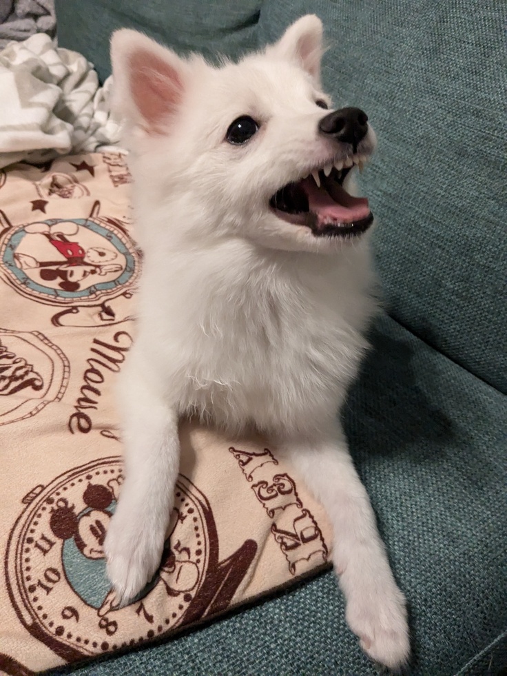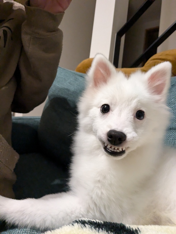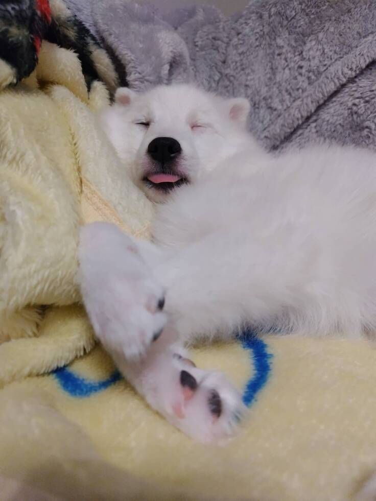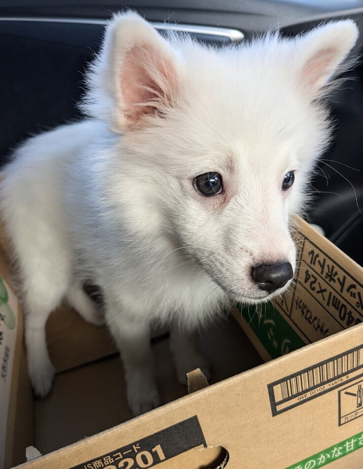 そうした中、令和6年8月下旬に、私が住む街で開かれた譲渡会に顔を出すと、そこには真っ白なフワフワとした小さな身体でこちらを見つめる『スピッツ』と目が合いました。