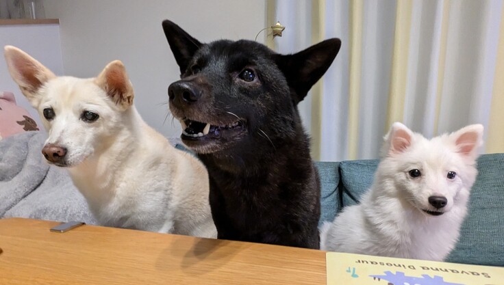 1匹は、捨て犬を保護したミックス犬の「きなこ(15歳)」、2匹目は「きなこ」が5歳の時にペットショップでなかなか貰い手が見つからなかった甲斐犬の「もなか(10歳)」です。