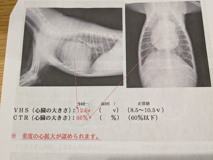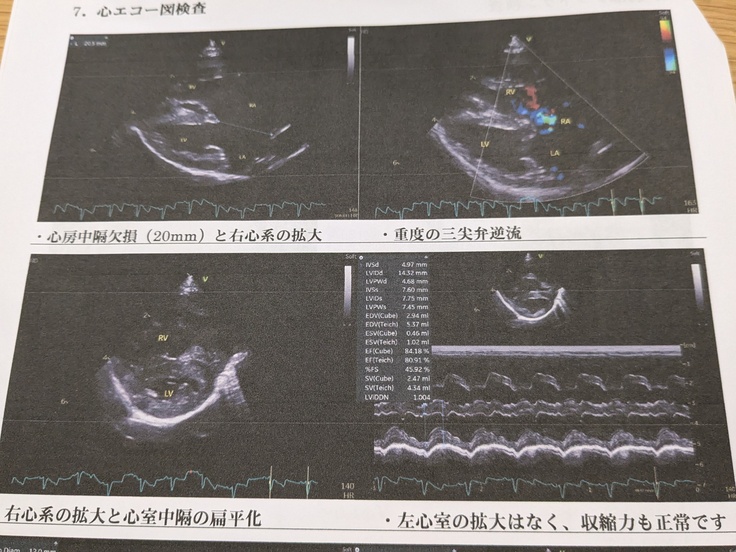 ▶心拡大が進行しており、重度な三尖弁逆流もあるため早急な外科治療が必要とのこと。