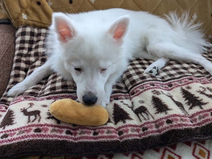 おもちゃはロープが大好きで、何時でも“ガジガジ”かじっては…そのままウトウトしています。
