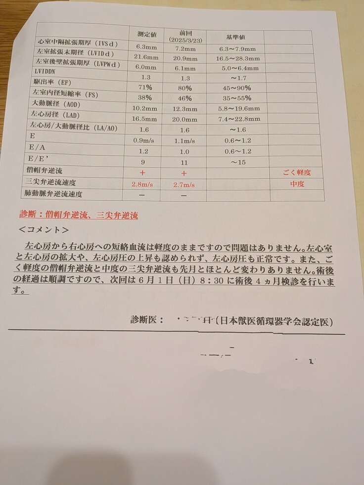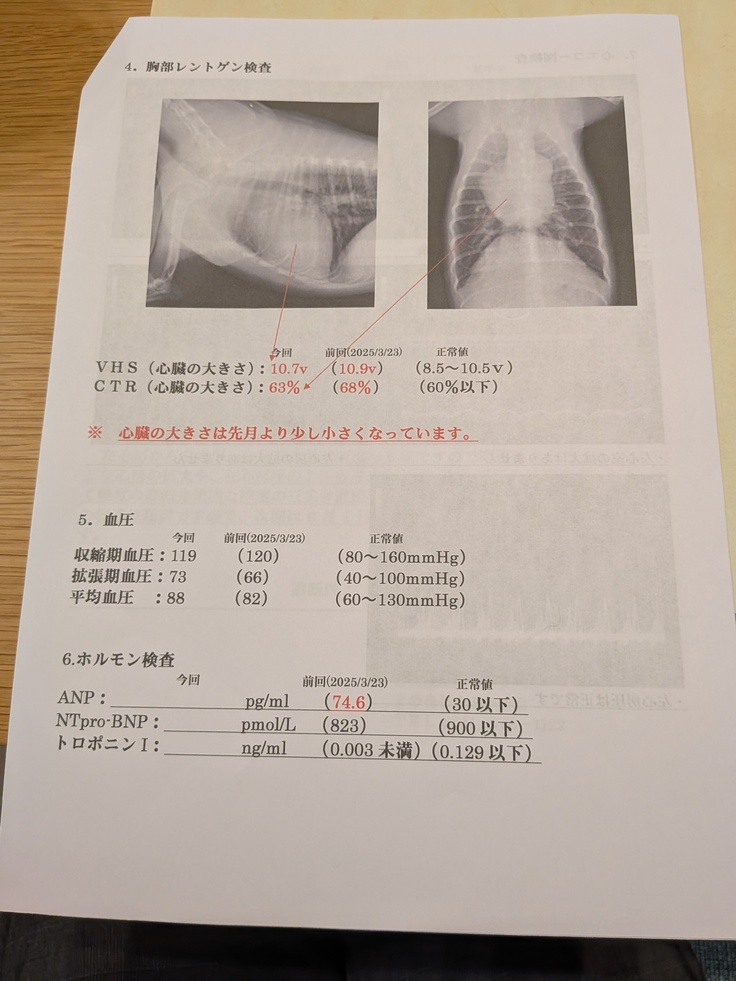 前回よりも心肥大は抑えられ、ほとんど正常の大きさと変わらないようになりました〜٩(๑´3`๑)۶