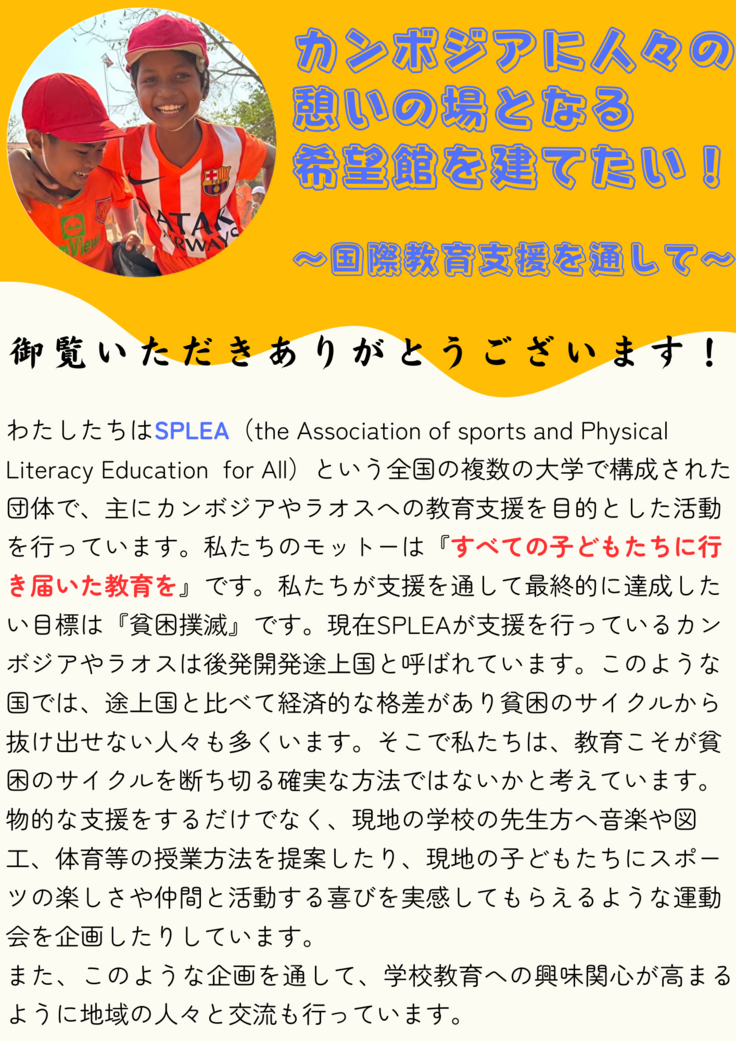 SPLEA (the Association of Sports and Physical Literacy Education for All) 国際教育協力学生ボランティアズ(ICVs)です!