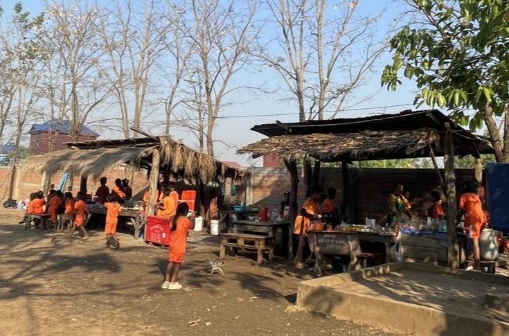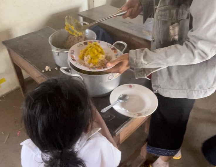 カンボジアでは家にご飯がない子どももいることから、学校によってはボランティア団体から送られた支援金を使って学校で1日に1回料理を作り、子どもたちに食べさせています。