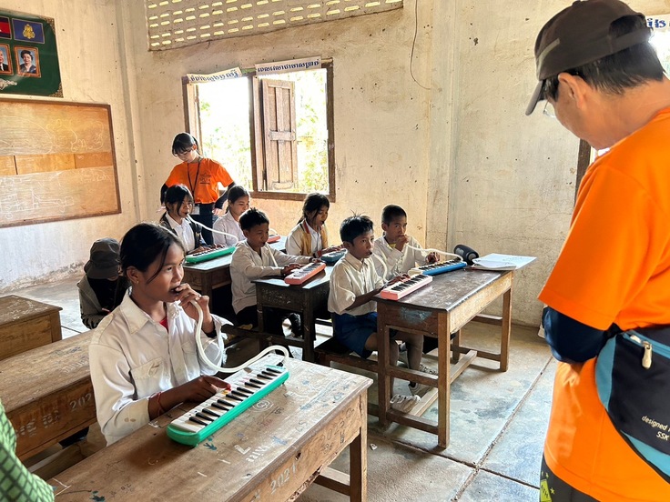 初めて見る楽器に目をキラキラさせている子ども立ちを見て、自分たちが長い時間をかけて楽器の寄付を募っていた意味はここにあったんだと改めて気付かされました。