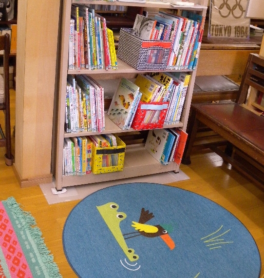 小さな子どもたちが手にとって楽しめる絵本を中心に置きました。