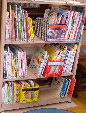 図書館に、たくさんの絵本が並びました。