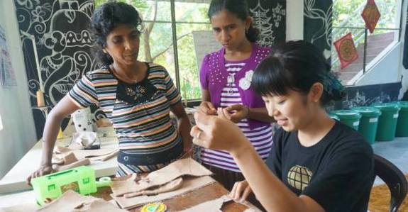 ここで染色された布は、北部、トリンコマリーにあるNGO、TECJAPAN様の縫製工房で、同じくスリランカ女性の手によって、特色ある製品として完成されます。内戦当時は互いに争っていた南部地域と北部地域。両方の地域の女性たちの共同作業で生まれる製品たち。その品質は、現地スタッフや日本からのボランティア女性の支援を受けたスリランカ女性達の手で、着実に改善されています 。
