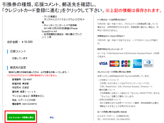 STEP2 引き換え券を選び、住所とクレジットカードの情報を入力する