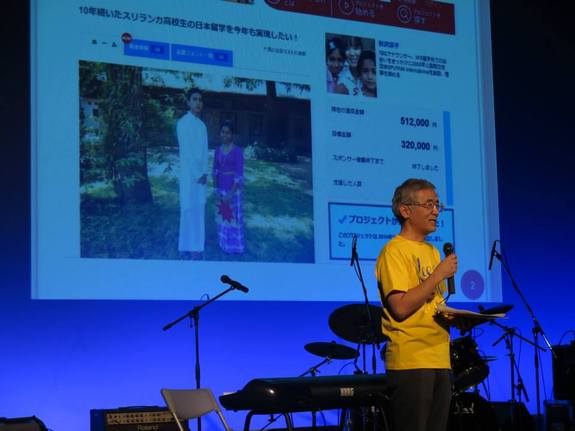 ステージでは、事務局の岡克彦から、READYFOR?のお礼、学生ボランティアツアーでSPUTNIK SriLankaに滞在・活動された東京農業大学・日本女子大学学生チームも、現地の日本語学校の生徒やその家族との貴重な交流体験を報告。