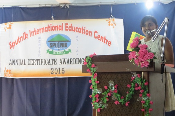 スリランカ中部の街、クルネガラにあるSPUTNIK International Sri Lankaのスプートニク国際教育学院では、毎年1回、卒業証書と表彰状の授与式を行っています。日本語クラスや絵画教室の修了生、成績優秀者、ローカル奨学金の奨学生、そしてAFSの留学生として日本に留学することが決まった高校生が、スプートニクにあるASIAホールでその頑張りを称えられます。