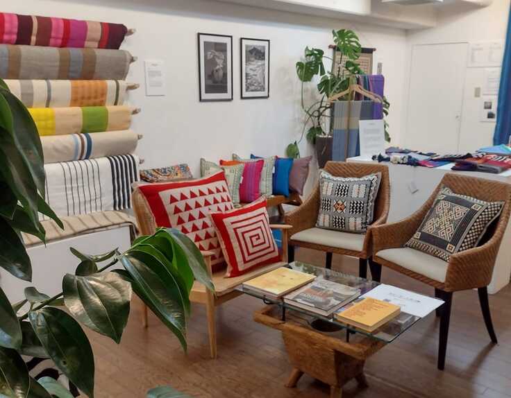 メイン会場には新たに作成いただいたバティック作品7点他、スリランカからお借りしたベントータ・ビーチホテルのバティック12点を展示。その他にも、刺繍のクッションカバーなどを含む小物類の展示販売を行いました。