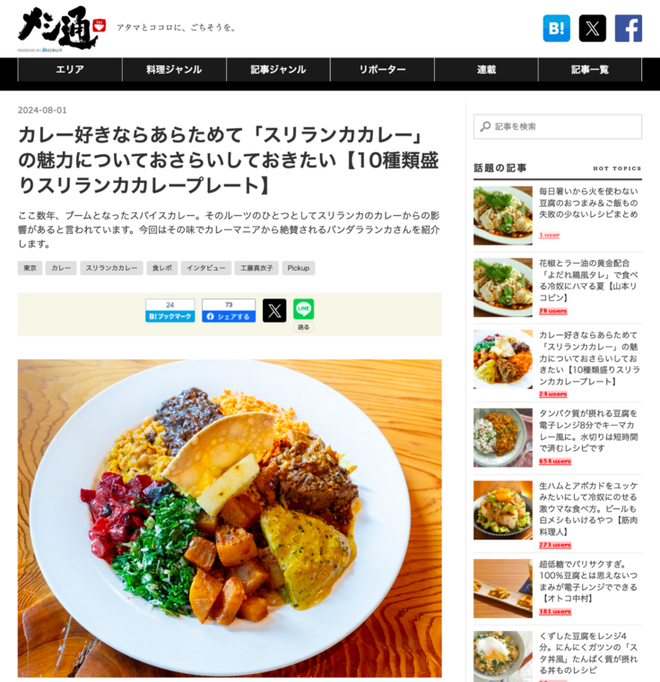 バンダラランカが、ホットペッパーが運営する『メシ通』に取り上げれました!