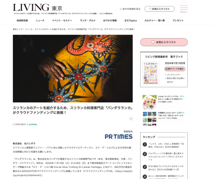 クラウドファンディング開始前の取材だったため、展示会については触れられていませんが、バンダラランカについて詳しくご紹介いただいています!是非ご覧ください。