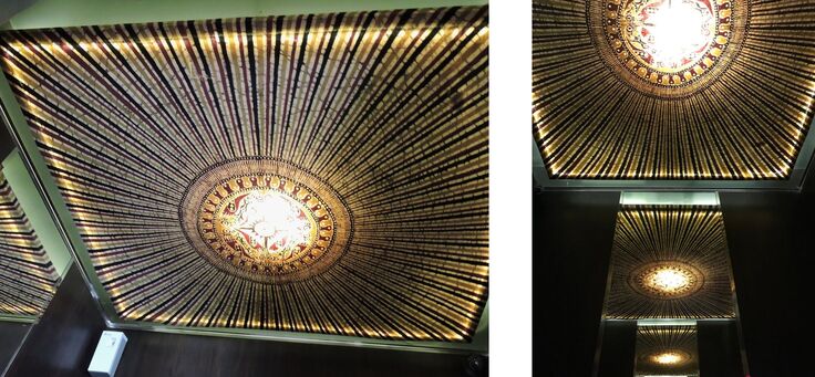 このホテルには、エレベーターの天井にもサンバーストの作品が使われています。