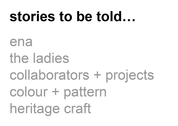 また、建築家ジェフリー・バワをはじめとした共に活動したコラボレーターや、エナが携わったプロジェクトなどについても触れ、スリランカの美しい色彩とパターン、そして遺産、伝統としての工芸を紹介できる展示会になればと思っています。