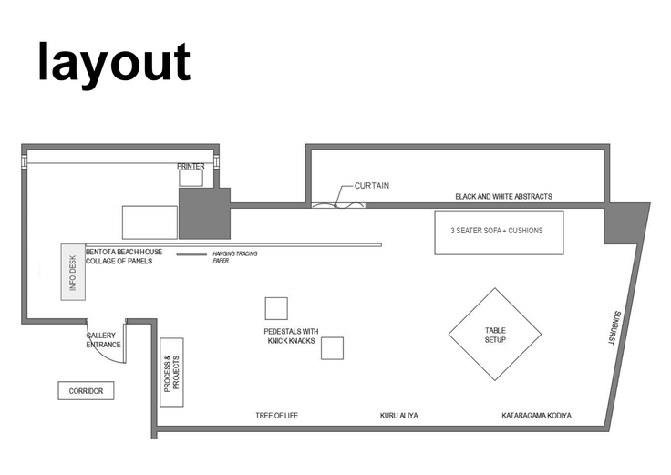 ジョナサンさんが考案してくださった会場のイメージ図は、小さなスペースながら窮屈感のない、バワ建築のようなとてもモダンな雰囲気で驚きました。