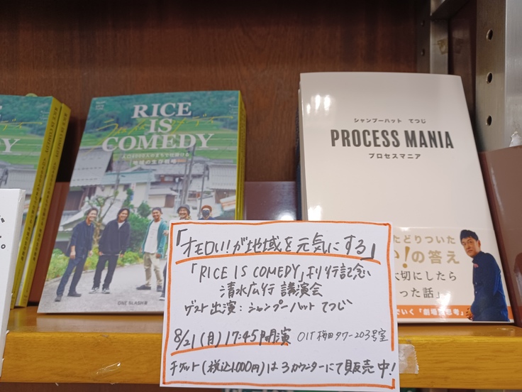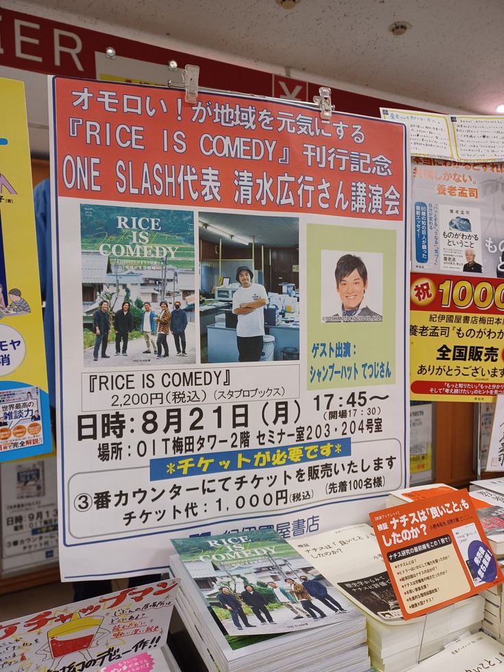 8月21日(月)、紀伊国屋書店梅田本店さんにて、『RICE IS COMEDY』刊行記念イベントを開催することになりました。