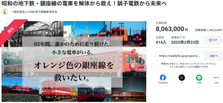 このように永きに渡って愛され、歴史を刻んできた貴重な車両を遺産として遺すべく、ご支援・ご協力を心からお願い申し上げます。