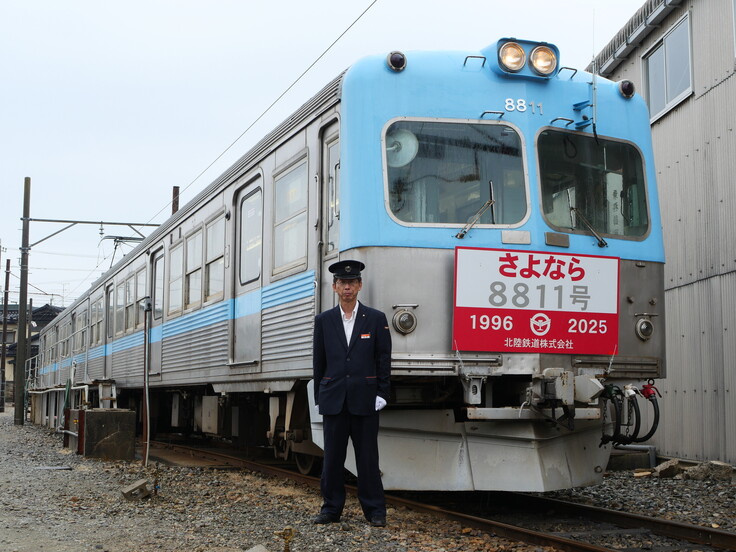 残された最後の1編成「8801編成」も、2025年5月に引退しました。本来なら解体されるはずのこの車両ですが、北陸鉄道様や関係者の皆さまのご厚意により、いま、解体を一時的に止めていただいています。