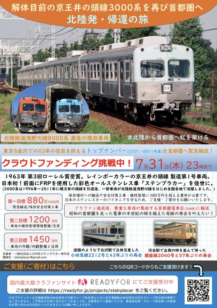 沿線の地域の文化の一つとして、3701号(8811号)を後世に残し活用していければと思います。