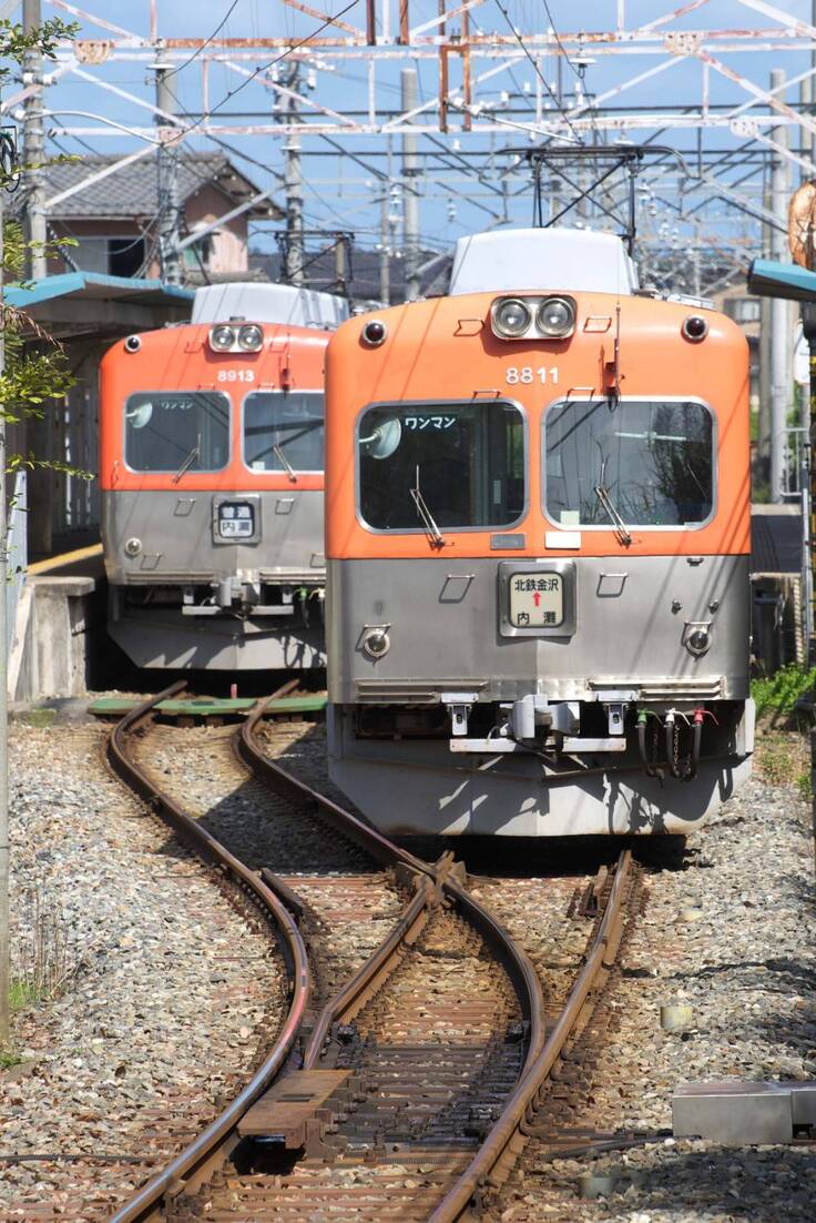 浅野川線でいえば列車交換をする三ツ屋駅。